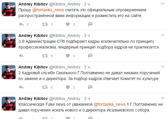 На данный момент в Смольном ничего не говорят по поводу срочной замены и. о. директора музея «Исаакиевский собор». Пресс-секретарь губернатора Петербурга Андрей Кибитов и глава комитета по культуре Константин Сухенко отказались комментировать информацию, сообщил «Интерфакс».