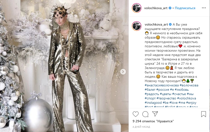 Обожаю Новый год, а он обожает меня. Новый год — это сказка, мы все взрослые дети, именно в этот период верим в чудеса и надеемся на исполнение желаний. Когда-то под Новый год много лет назад маленькая питерская девочка загадала желание стать известной балериной и исполнила его. Потому с тех самых пор я верю в чудеса! — поделилась в беседе с «Ридусом» Анастасия Волочкова.