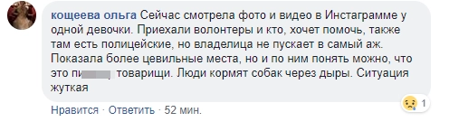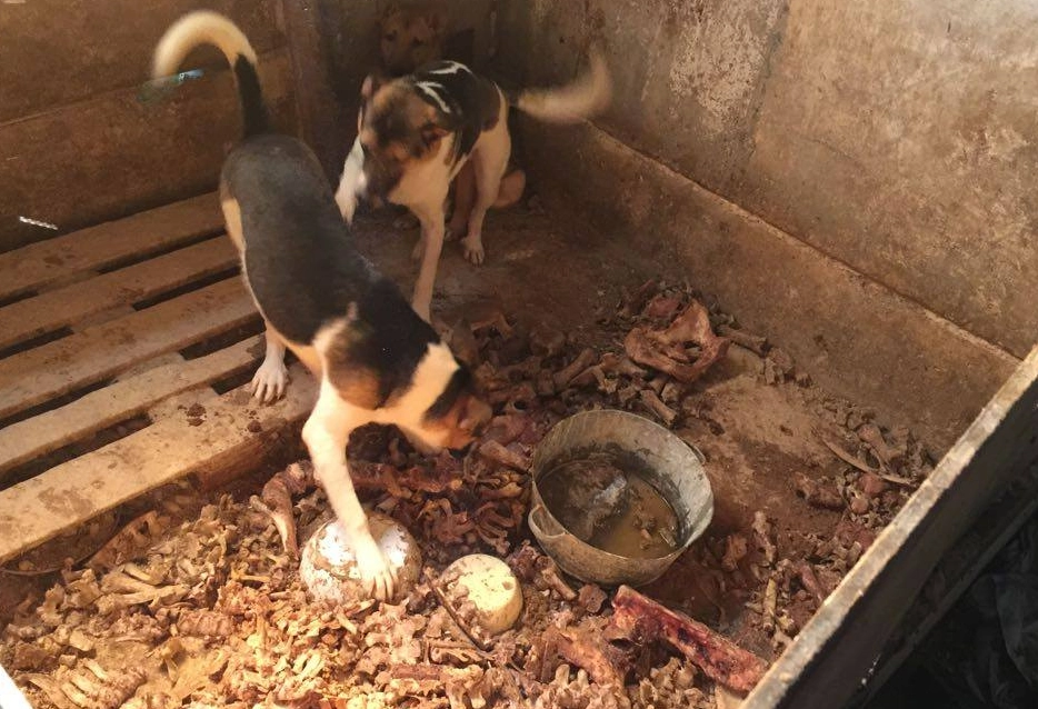 «Внутри приюта находятся без еды и воды 600 собак!!! Работников нет, волонтеров нет! Корм не закупается, колодец пересох, собаки, в том числе щенки, не едят ничего, кроме голых костей с опарышами! Собаки по колено в собственных испражнениях, в „операционной“ на пеленках на полу в собственных фекалиях лежат после стерилизации животные! Щенки находятся с коробках из-под лифтов без света. Еще живые собаки „играют“ с трупом собачки», — рассказали активисты.