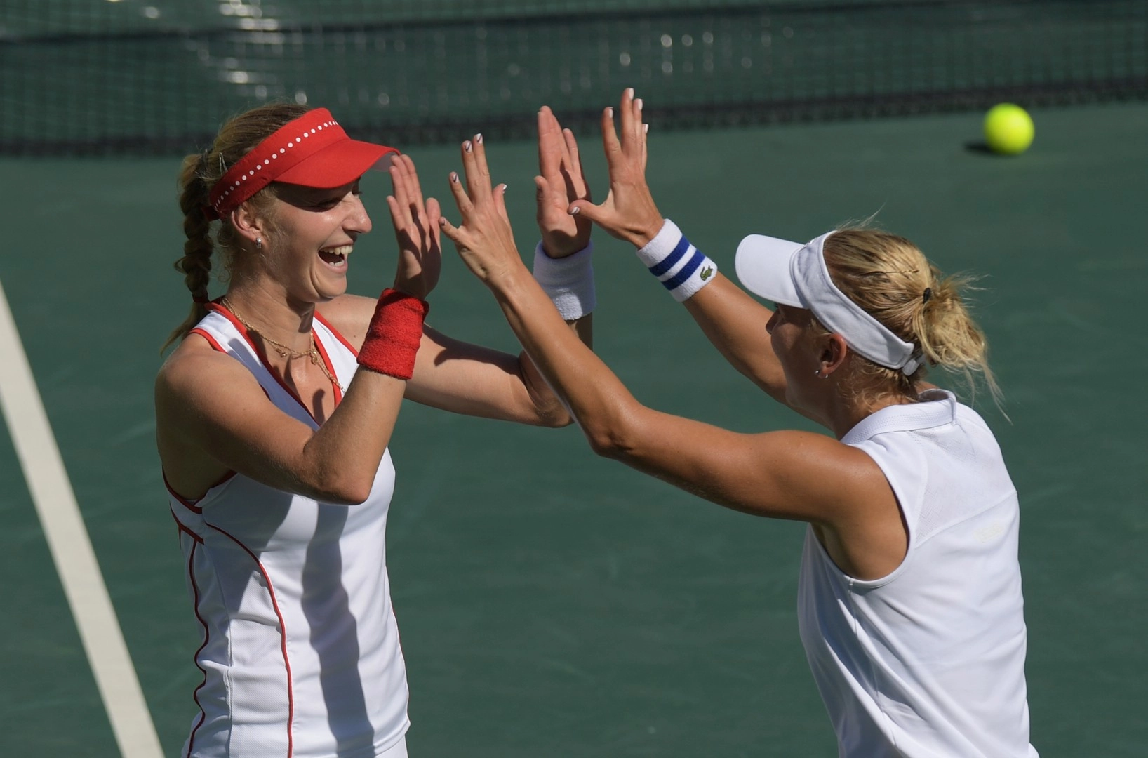 Екатерина Макарова и Елена Веснина взяли золото в женском парном разряде по теннису.