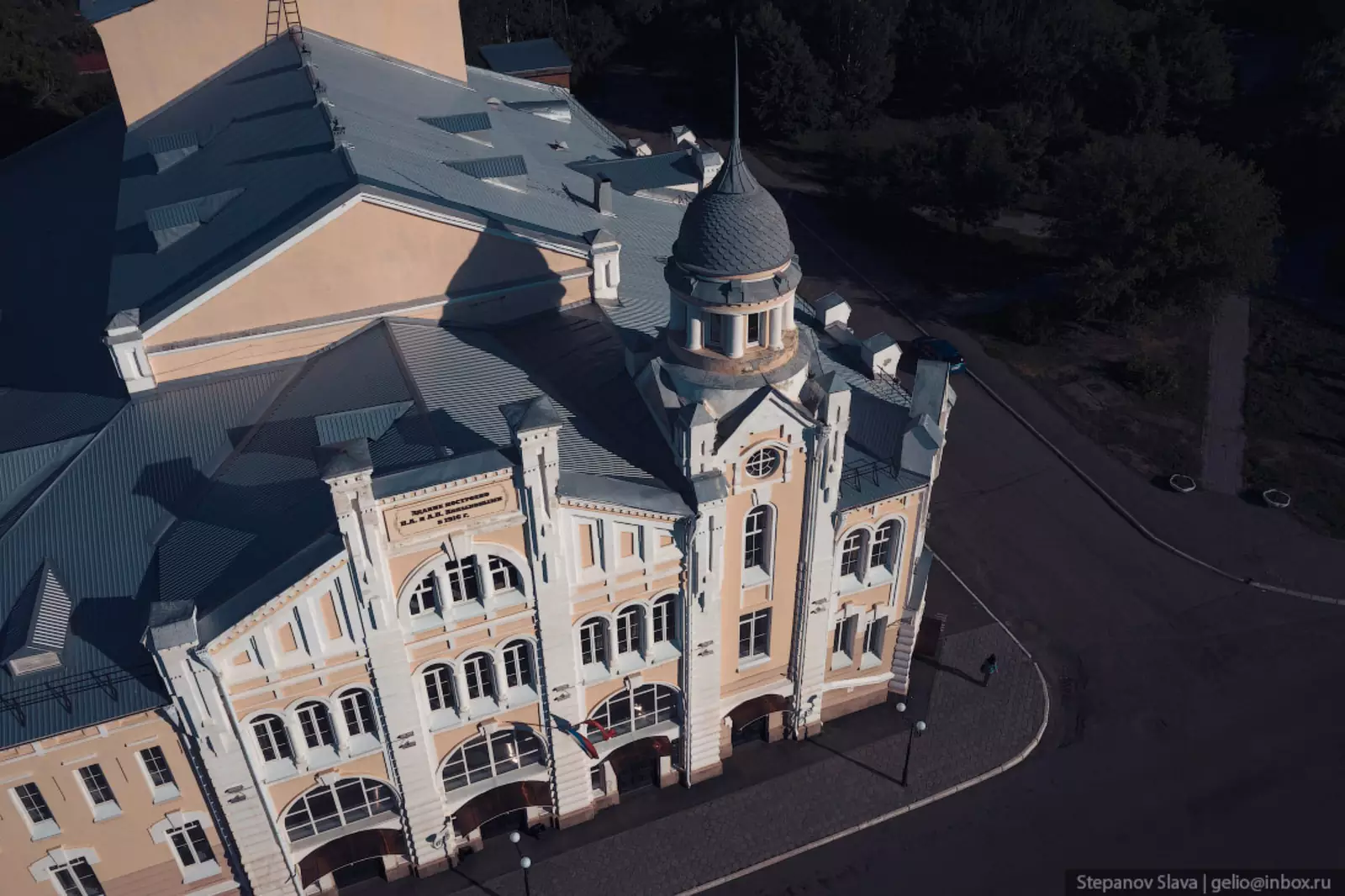 12. Здание драмтеатра построено в 1914 году. Деньги на строительство выделил отставной полковник Антон Петрович Копылов, племянник купца-монголиста Павла Копылова. Дядя оставил в завещании внушительную сумму на благотворительность и бывший военный решил построить культурное заведение. По условиям полковника, в этом доме нужно было разместить библиотеку и воскресную школу для взрослых, проводить лекции, народные чтения. И ни в коем случае не продавать спиртного — именно для просвещения и борьбы с пьянством Антон Копылов и задумал строительство Народного дома.