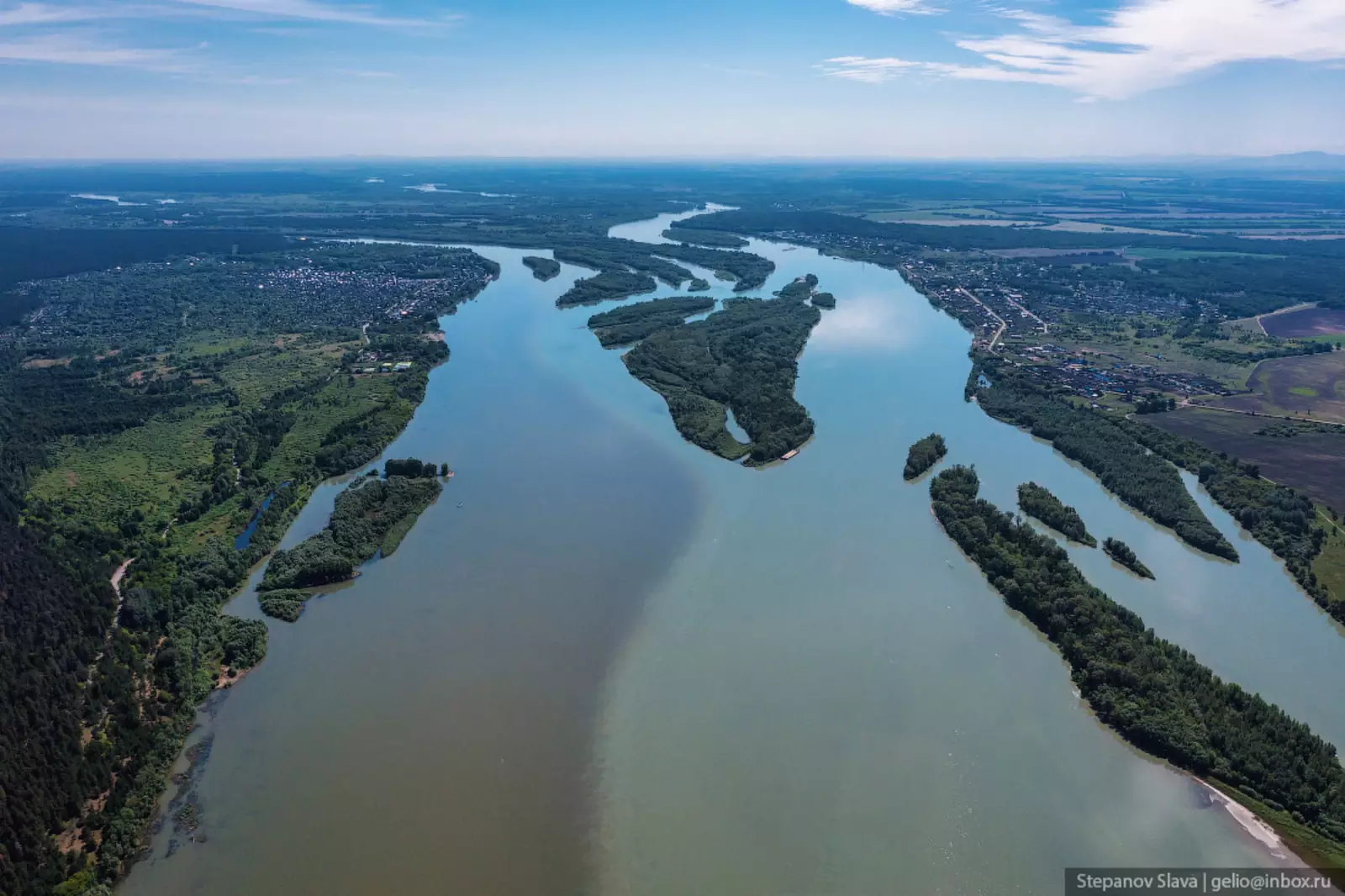48. Место слиянии Бии и Катуни – две горные алтайские реки сливаются в единый поток, образуя самую длинную реку в России – Обь.