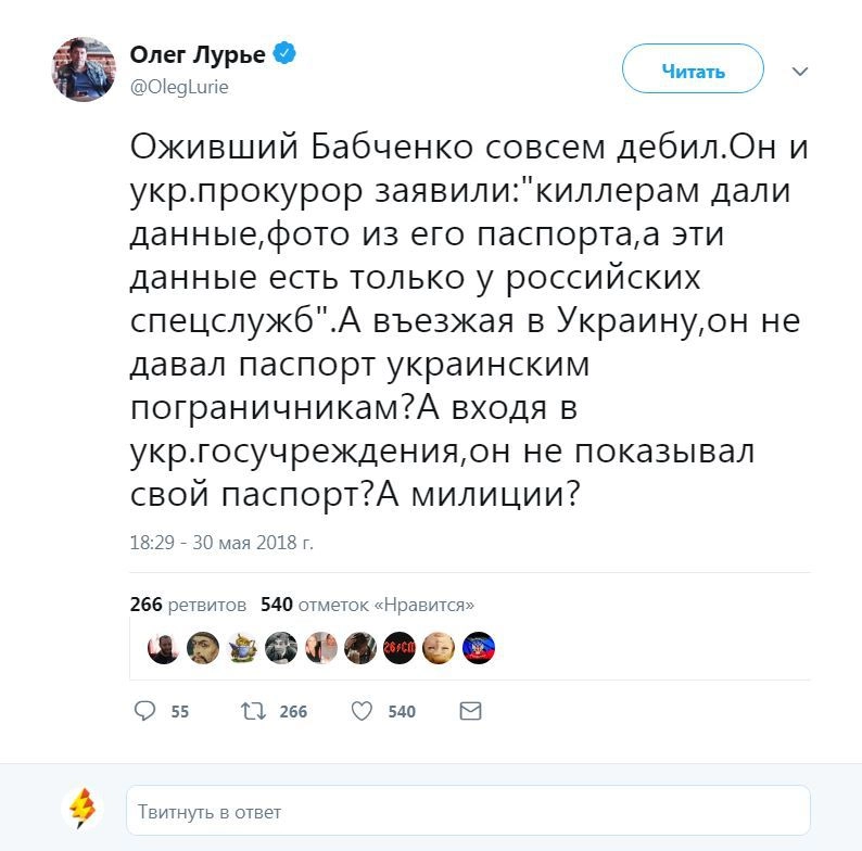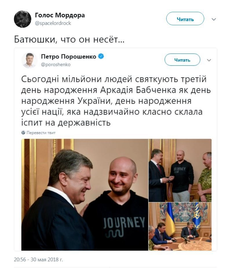 Рунет вторые сутки взахлеб обсуждает «убийство» российского журналиста Аркадия Бабченко, которое оказалось инсценировкой Службы безопасности Украины. Вечером 29 мая, когда украинскими официальными лицами была распространена информация о его гибели, у блогеров был шок, затем они принялись кто горевать, а кто — злорадствовать, а также строить предположения. Теперь в социальных сетях бурно дискутируют насчет возвращения Бабченко к жизни.