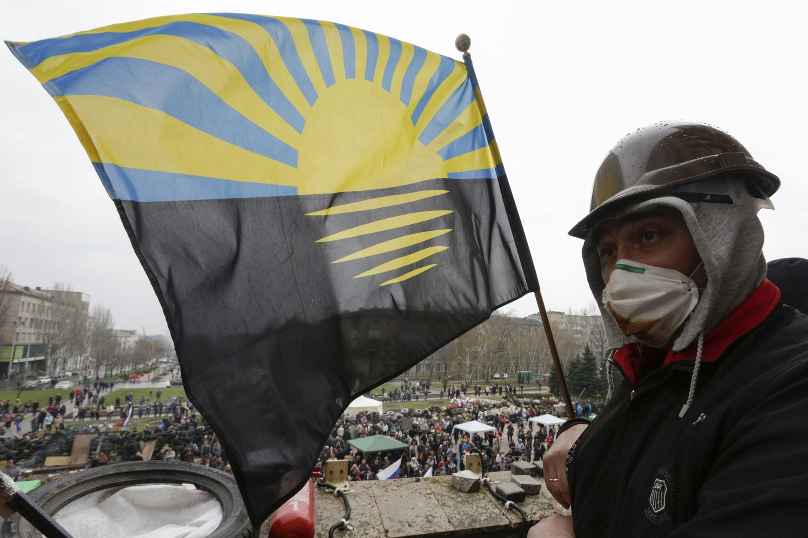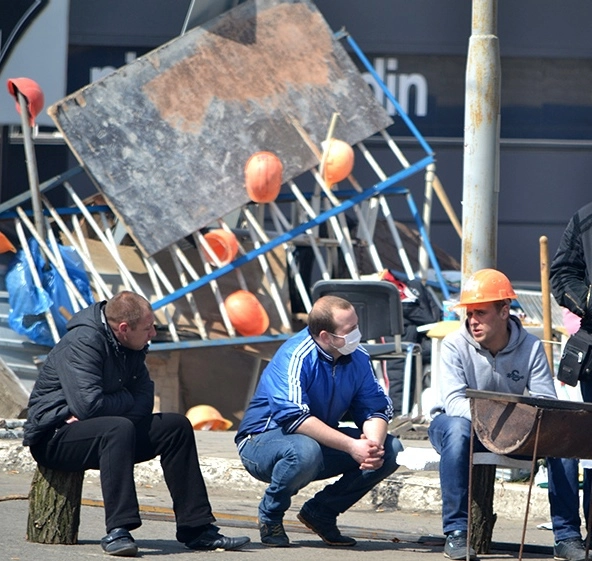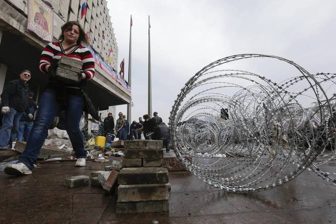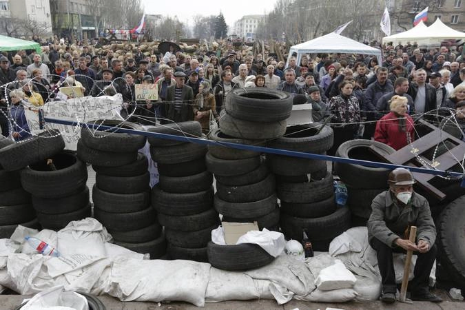 Сотни активистов дежурят у здания администрации в Донецке в ожидании штурма. Пространство между баррикадами, на подступах к баррикадам заполнено сотнями пророссийских активистов. Люди жгут костры, чтобы не замерзнуть. Основная масса ополченцев у здания – мужчины от 16 до 50 лет. Есть женщины в возрасте и пенсионерки.