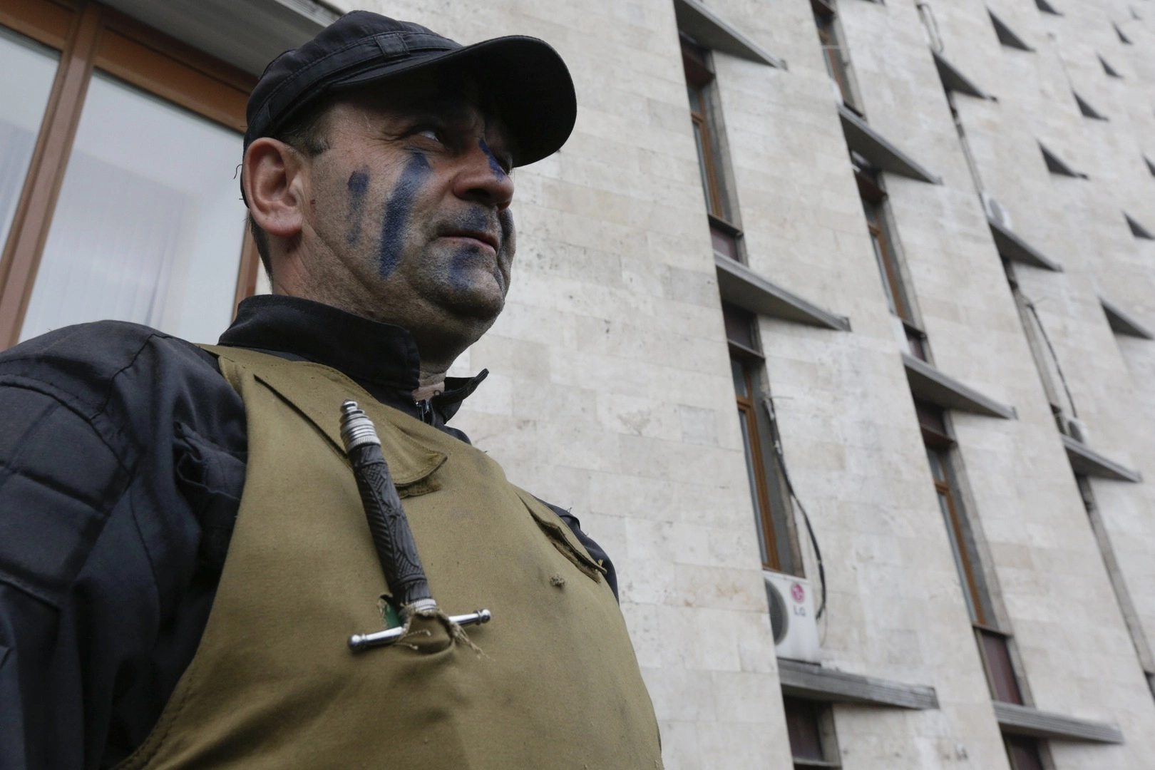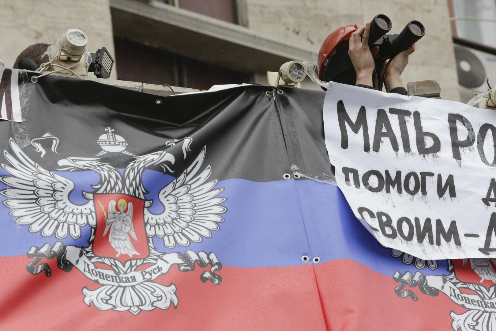 Новые обитатели здания стараются передвигаться по внутреннему двору только вдоль стен. Дело в том, что на крышах прилегающих домов не один раз были замечены снайперы. Одеты они, по словам ополченцев, в форму украинского милицейского спецназа, но вооружены винтовками западного производства.
