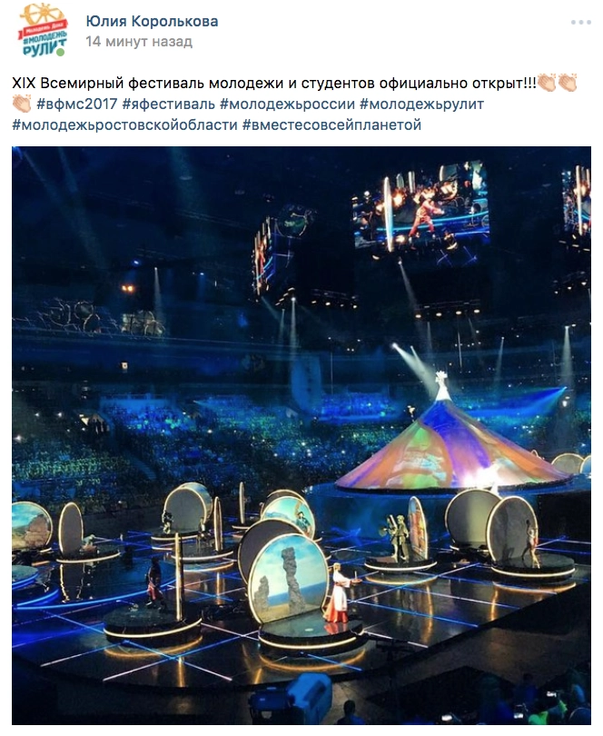 А те, кому повезло узреть торжественную церемонию открытия ВФМС-2017 в Сочи, не перестают оставлять восторженные отзывы на страницах своих соцсетей: