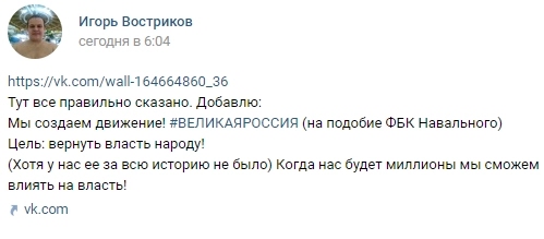 Пользователи неоднозначно отнеслись к инициативе Игоря Вострикова. Кто-то всецело поддерживает его, одобряет создание движения.
