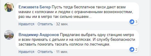 По словам Бердник, она не представляет, как среднестатистическая женщина с ребенком, сложенной коляской и сумками должна передвигаться в метро. Особенно зимой, когда ребенок тепло одет и немало весит. Бердник также напомнила о многодетных семьях.