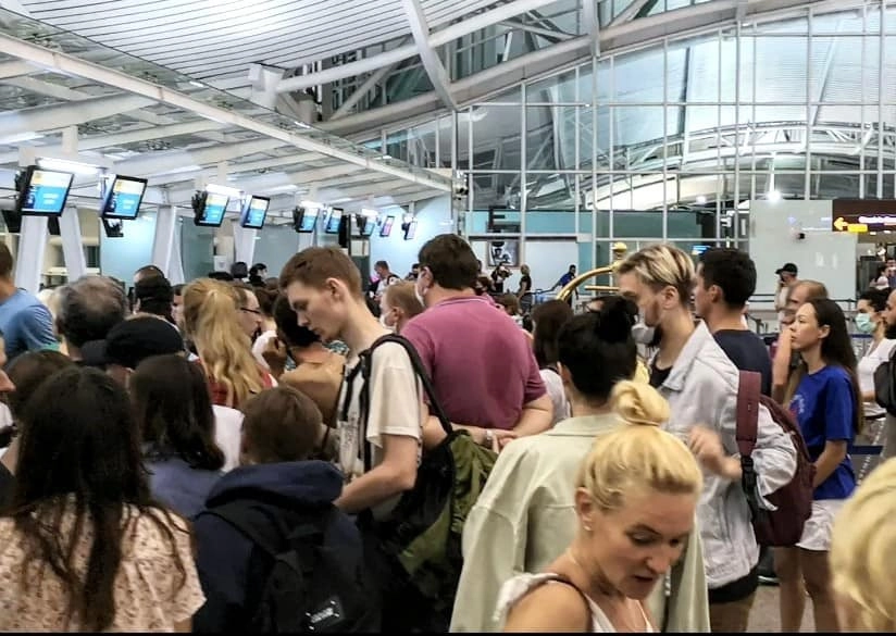Но самолёт улетит вовремя, видимо чтобы не платить пени аэропорту за задержку рейса. Нам, тем кто стоят у стойки, чьи паспорта обрабатываются до сих пор обещают что мы улетим.