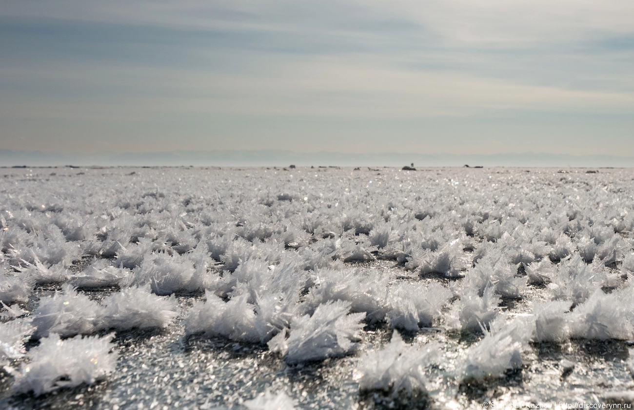 В месте, где Ангара вытекает из Байкала, есть участок промежуточного состояния воды… очень тонкий лед. Он был покрытый чудеснейшими кристаллами… Пушистики, мохнатки, как угодно, но они были прекрасны!
