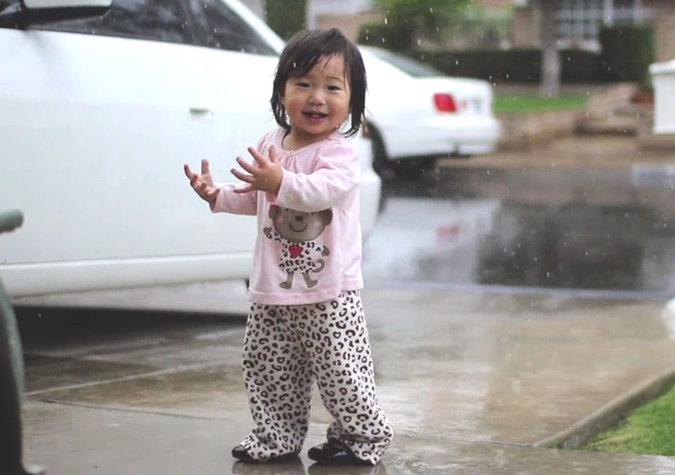 Кейден уже 15 месяцев, но она живет в солнечной Калифорнии, в городке, где почти круглый год стоит ясная погода. Ее родители засняли на камеру момент, когда Кейден впервые вышла на улицу во время дождя.