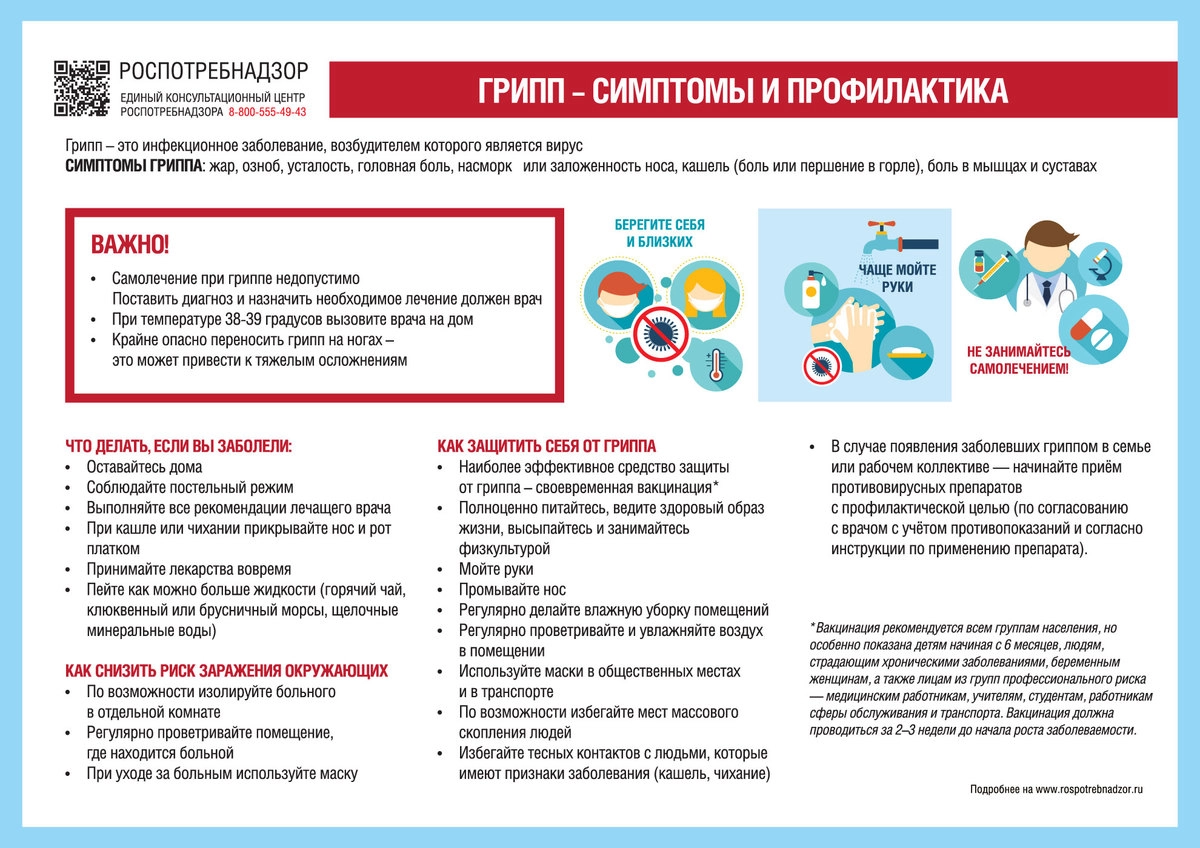 Эксперты Роспотребнадзора заявляют, что вакцинация — самый эффективный и безопасный способ защиты от гриппа и его осложнений. Как правило, защитный эффект от прививки проявляется через 10—15 дней после введения вакцины и длится около года.