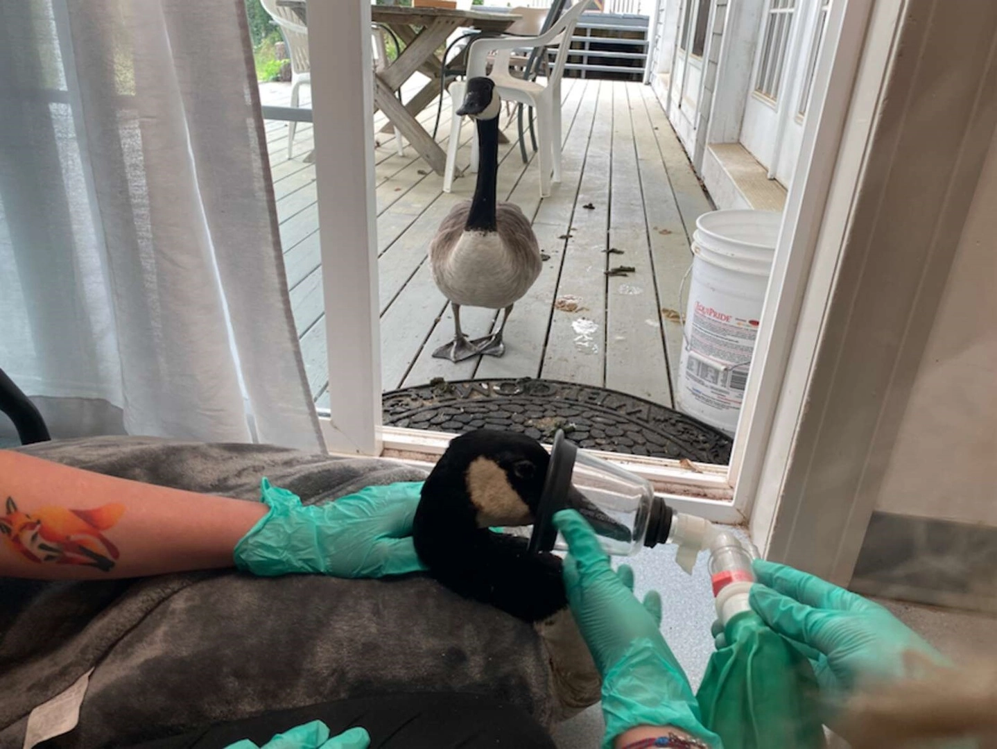 Врачи забрали на лечение дикого гуся. Вскоре его навестила возлюбленная