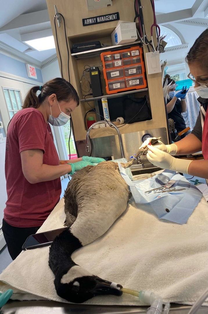 На этой неделе сотрудники центра дикой природы Cape Wildlife в Массачусетсе (США) заметили, что у дикого гуся по кличке Арнольд, который живет на пруду неподалеку от центра, возникли проблемы с ходьбой. Они обнаружили у гуся травму лапы и забрали его в клинику на лечение.
