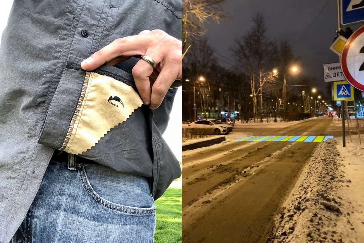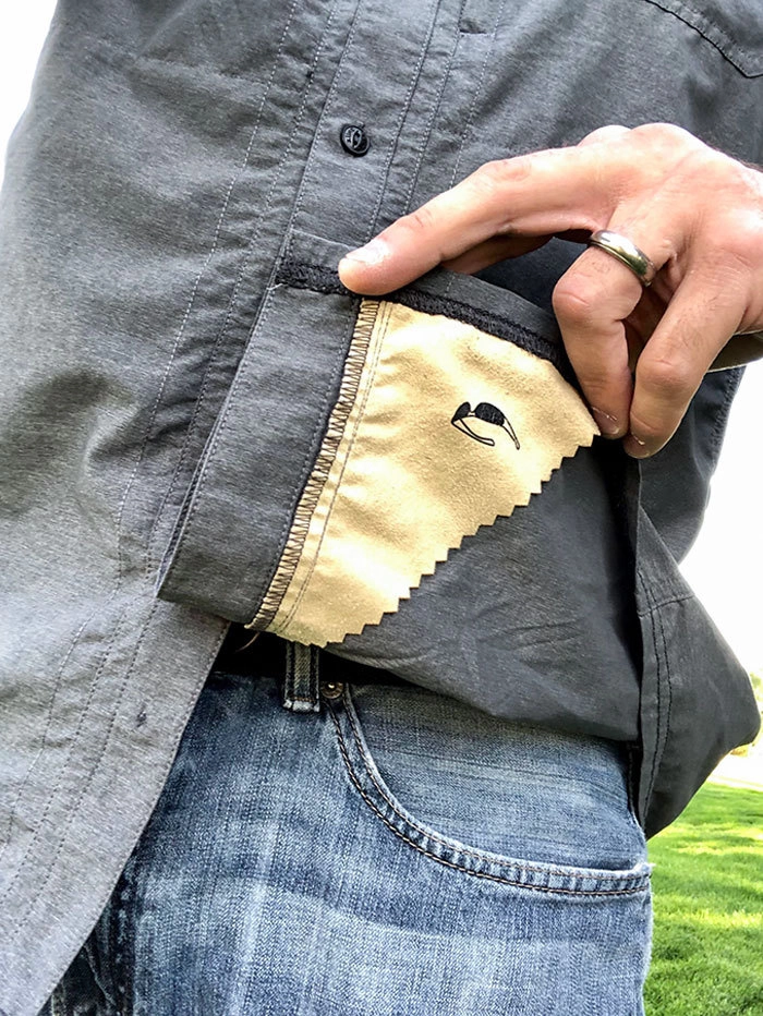 Кусочек ткани для протирания очков, пришитый с обратной стороны рубашки