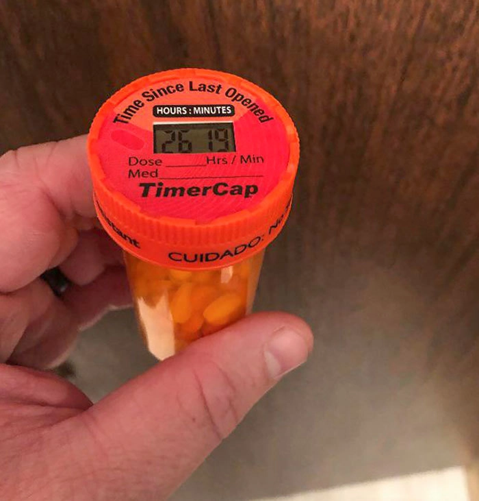 Баночка с лекарствами, показывающая, как давно вы открывали её в последний раз