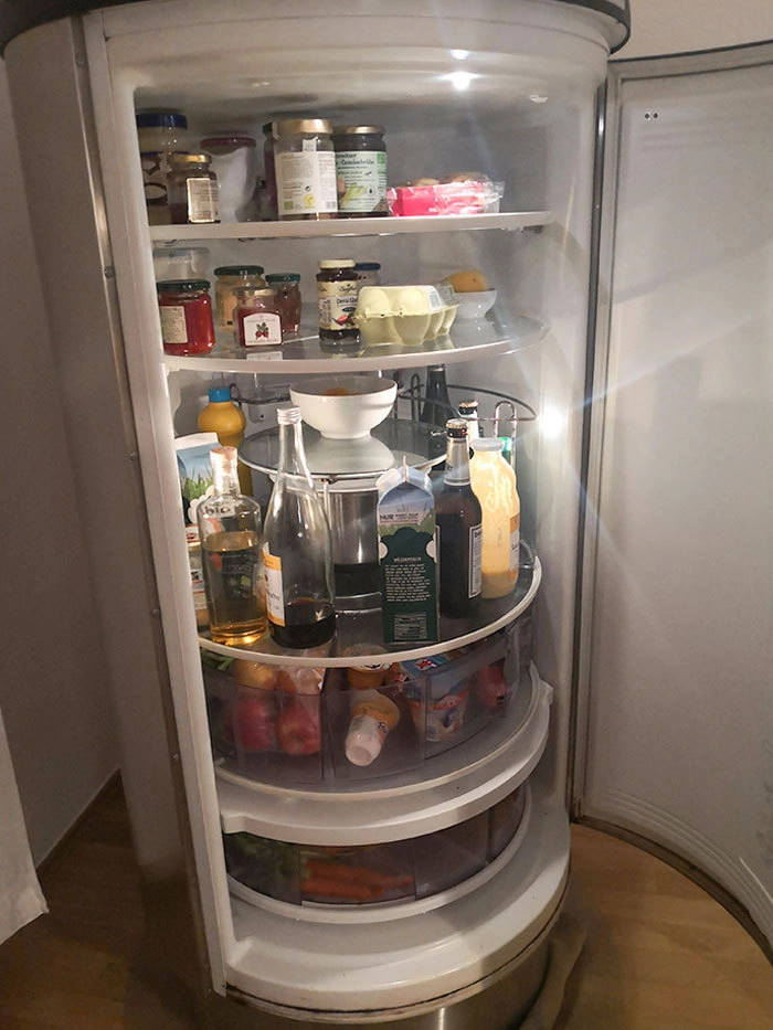 Вращающиеся полки в холодильнике, которые позволяют легко дотянуться до всех продуктов