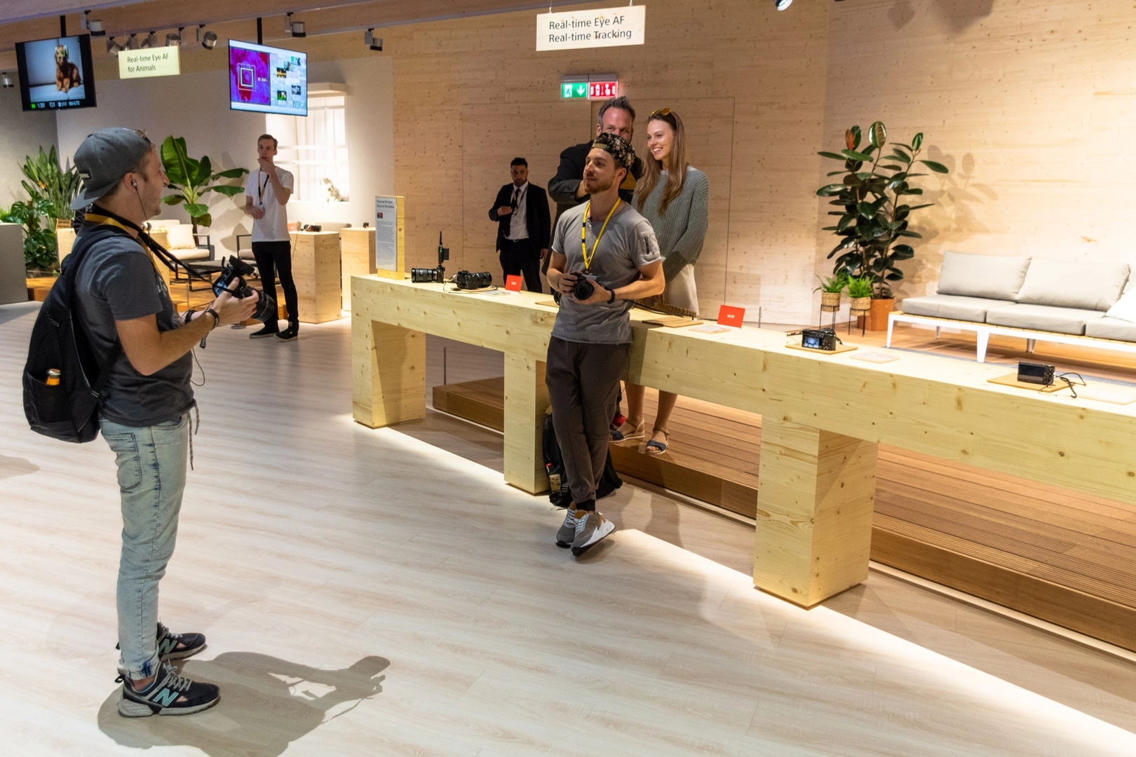 Для него организовали отдельную охраняемую стойку за которой стояли профессиональные консультанты и показывали гаджет только ограниченное время.