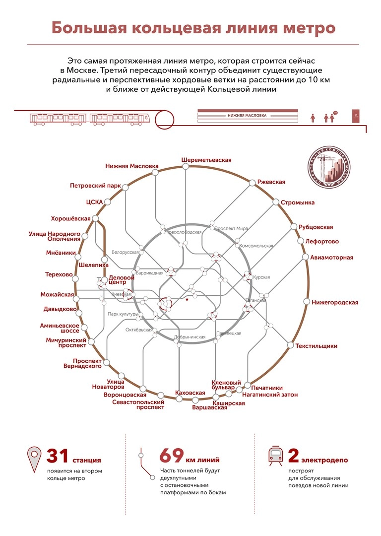 Первый участок Большой кольцевой линии наглядно демонстрирует масштаб проекта. Столица претендует на мировое первенство по длине кольцевой линии подземки: суммарная протяженность Большой кольцевой должна составить 69 километров и обогнать нынешнего лидера по подземным кольцам — Вторую кольцевую линию Пекинского метро, протяженностью 57 километров.