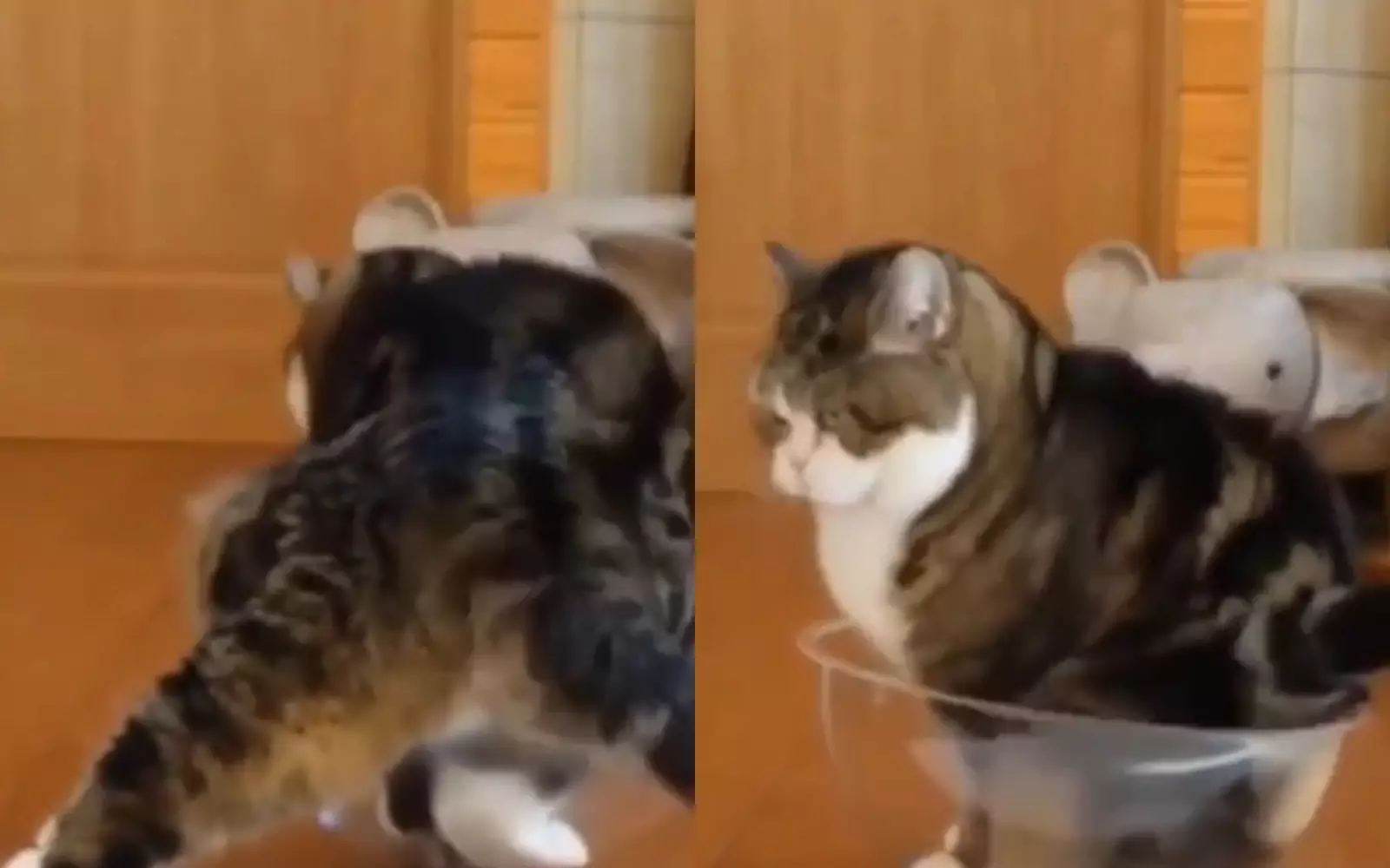 На видео попал очень настырный и вредный котяра, который уселся в стоявшую на столе прозрачную миску и был очень доволен собой. Почему котофей захотел сесть именно в эту миску, неизвестно. Видимо, она была самой удобной и красивой, и котейка решил, что она достойна его пушистой королевской пятой точки.