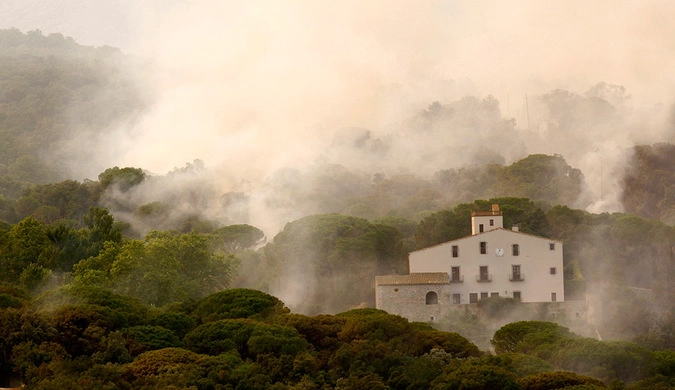 Дом окутан дымом от лесных пожаров в испанской провинции Жирона. © Albert Gea/Reuters