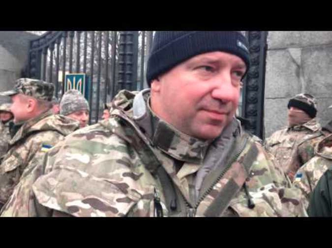 «Свои в своих. Артиллерия по позициям батальона «Айдар» — заявил комбат во время акции у здания Минобороны в Киеве.