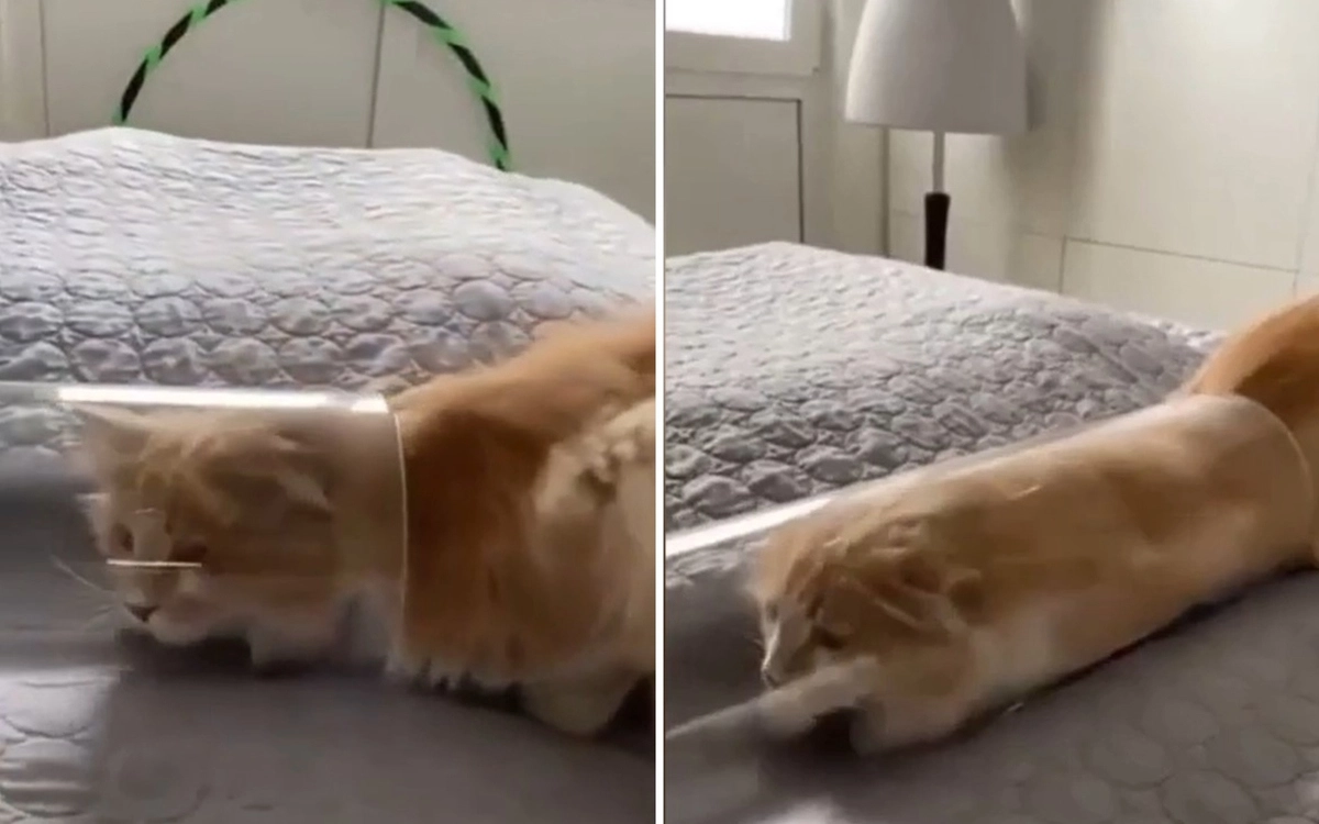 Втиснулся: на видео сняли еще одно доказательство того, что коты — жидкость