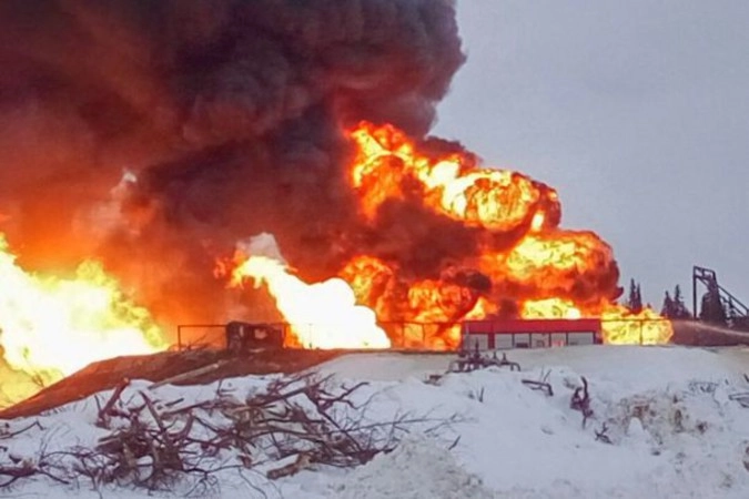 Вторые сутки горит нефтяная скважина в Коми