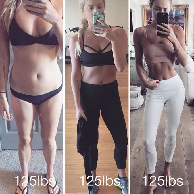 Худеющие люди чаще всего измеряют свои достижения в килограммах. Однако эксперты советуют не смотреть на цифры на весах и следить за успехами по объёмам тела. Ведь при одном и том же весе человек может выглядеть абсолютно по-разному, тем более что мышцы весят больше, чем жир. Собрали для вас фотографии женщин, которые поделились своими метаморфозами. И при всех поразительных переменах во внешности их вес в килограммах остался прежним.