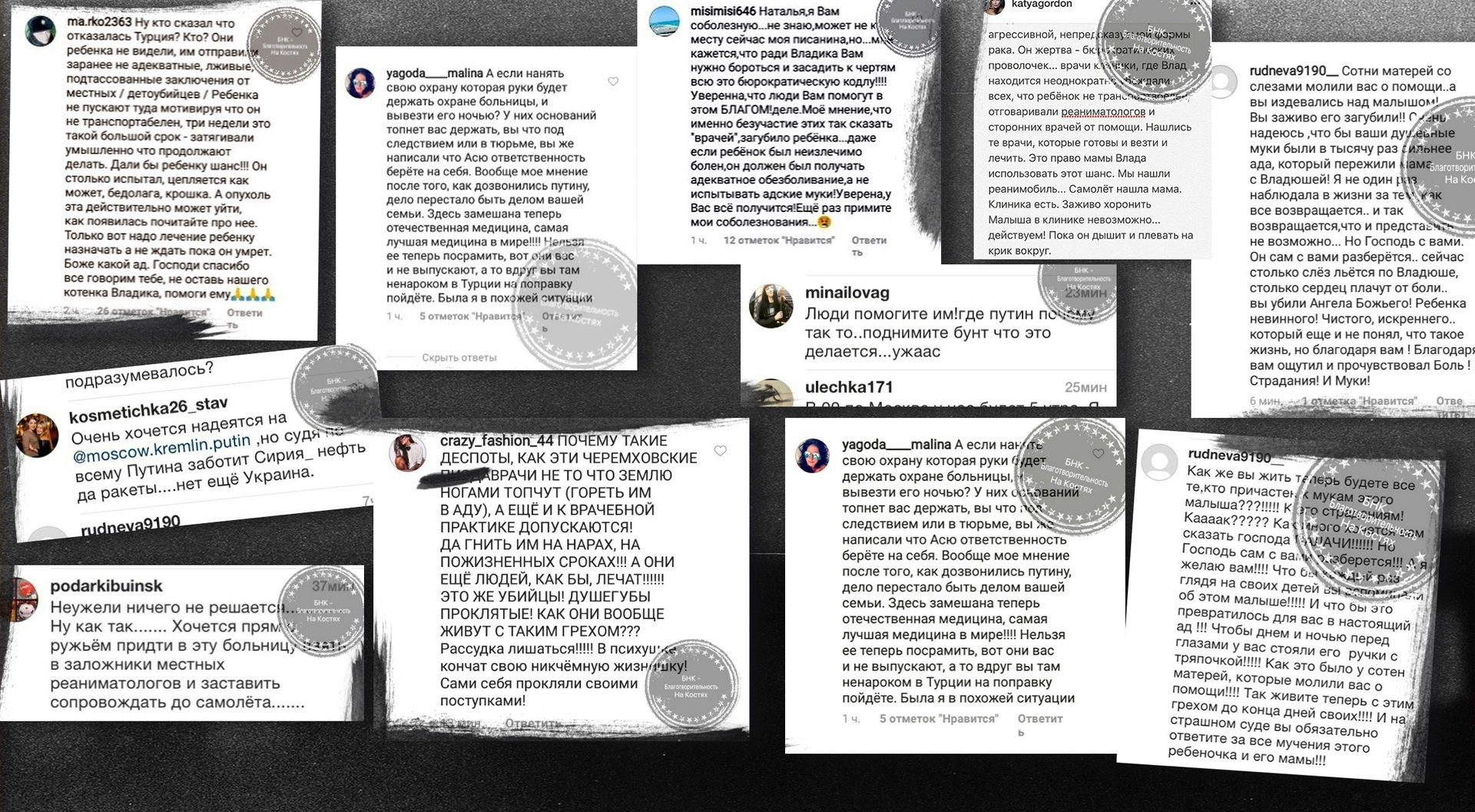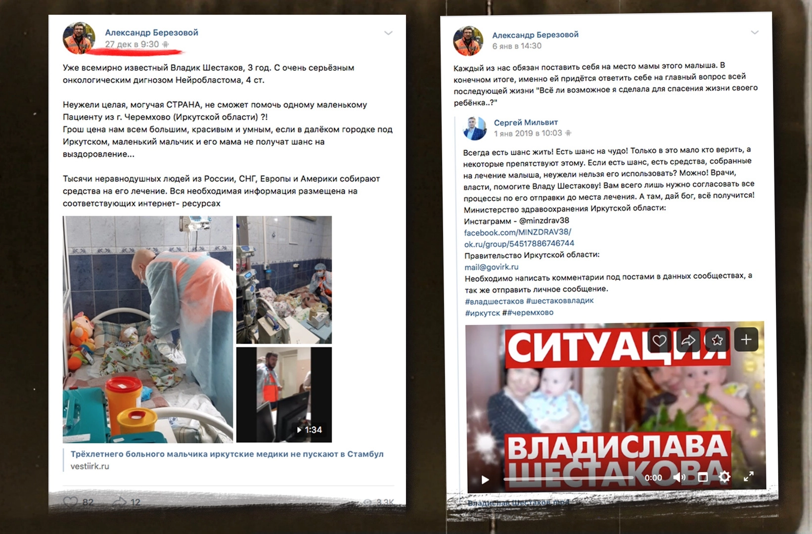 «Этот сбор мне очень напомнил историю Юли Макаровой, девочки из Кургана. Там тоже до последней минуты рассказывали жертвователям, что ребенка уже ждут в американской клинике, что за ней уже прислал самолет таинственный миллионер и тот только и ждет разрешения на посадку в Кургане. Но вот злая опека, корыстный местный фонд и „врачи-убийцы“ держат ребенка в реанимации и злостно не отдают. В истории Влада миллионера не было, но был врач частной скорой помощи, поехавший в Черемхово за неделю до Нового года и подогревавший сборщиков своими постами и репостами. И тоже стояла машина, готовая унести ребенка в Иркутск, и самолет на полосе, готовый взлететь в сторону Турции. Но вот „врачи-убийцы“ на местах все портили», — объясняет Светлана Машистова.