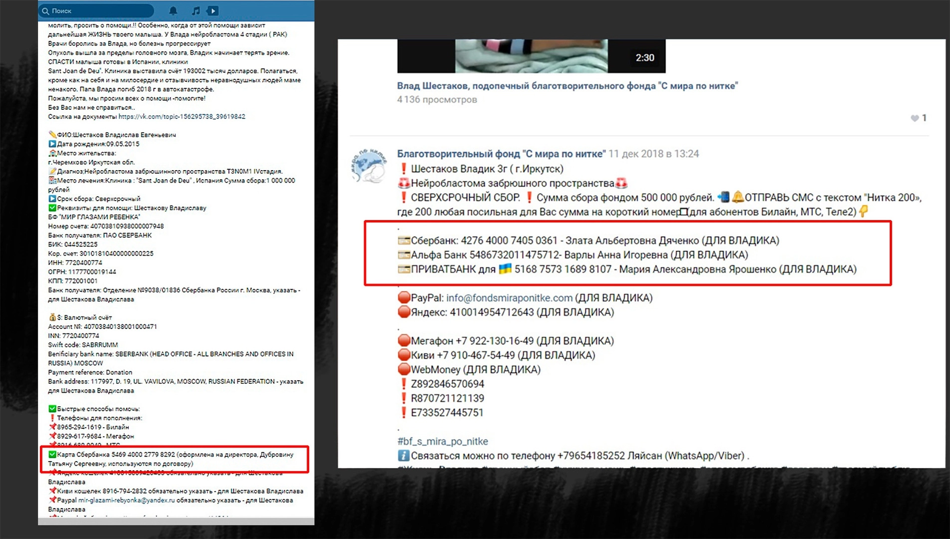 Обратите внимание, что фонды собирают деньги на карты, оформленные на директора и непонятных «мутных» личностей