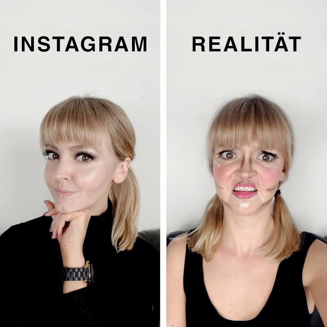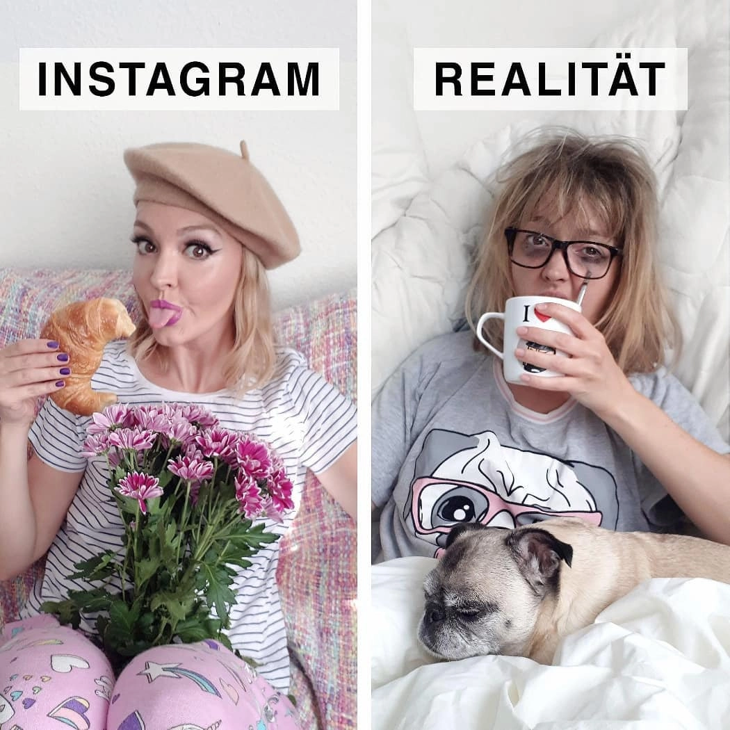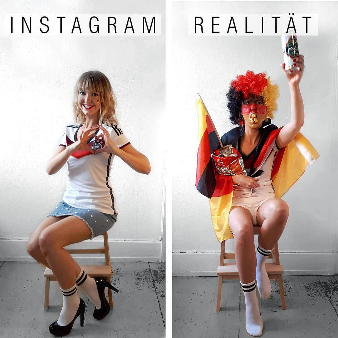 Немецкая блогерша Джеральдина Уэст (Geraldine West) из Кёльна придумала на эту тему целый проект. Она создаёт фотографии из серии «Инстаграм и реальность», которыми показывает, как отличается красивая картинка от повседневной жизни. С помощью этой идеи девушка собрала уже почти 18 тысяч подписчиков на свою страничку. Правда критики отмечают, что так называемые реальные снимки Джеральдины тоже слишком постановочные. Давайте посмотрим.