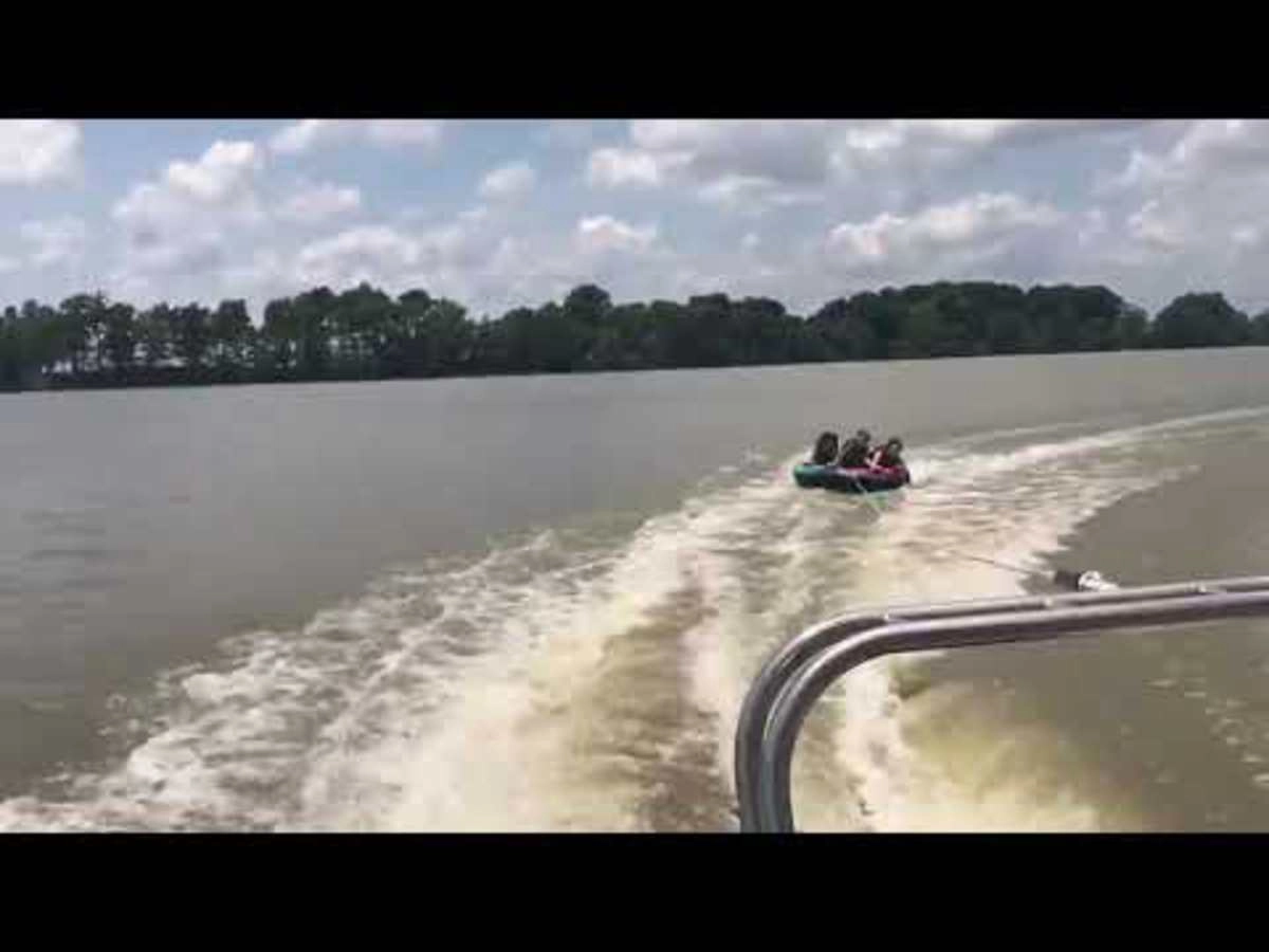 Большая рыба испортила детям веселье, сбив девочку во время скоростного путешествия по озеру.