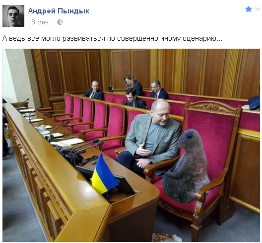 «Сегодня выступил в Верховной Раде. Рассказал народным избранникам, что люди уже задолбались ждать нормальной жизни!» — написал в Facebook сам персонаж в соцсети.