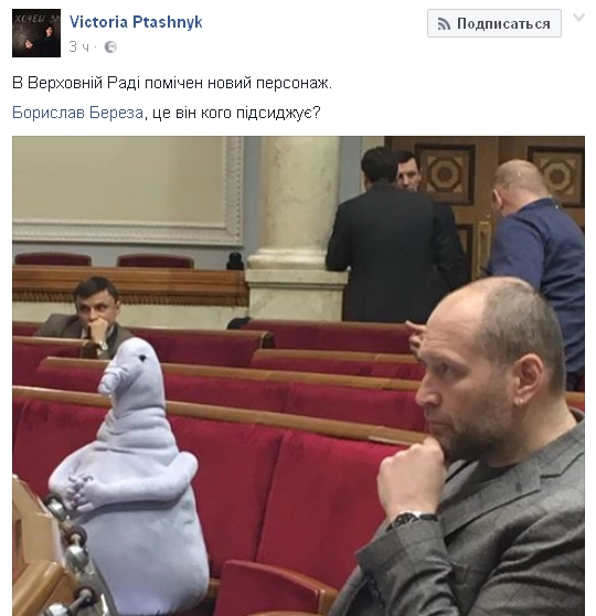«Он, как и большинство украинцев, ждет посещения и работы нардепов. И очень ждет качественных изменений от Кабмина. Терпения у него немало. Времени тоже. Чего нельзя сказать про Украину», — прокомментировал Береза появление плюшевого героя.