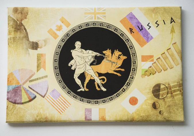 - Укрощение стража Аида — пса Цербера — Борьба с США. Трехголовый пес Цербер сторожил царство мертвых Аида, не позволяя умершим возвращаться в мир живых. «Экономика США сейчас так же мертва, как древние греки, но современный Цербер, американское правительство, не позволяет ей спуститься к мертвым, подпитывая бесконечными войнами и разжигая конфликты по всей Земле. Создание Путиным Евразийского союза положит конец монополярному миру и укротит Цербера», — такова концепция последнего подвига.