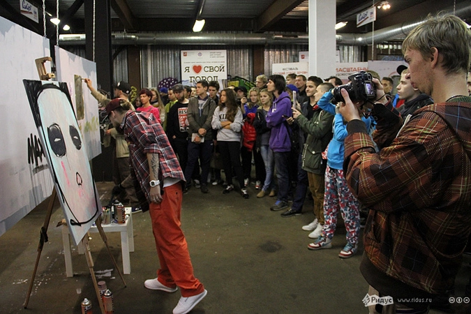 Выставки MC KUNSTFABRIK уже прошли в Белоруссии и Питере. На мероприятие в «СахАрт» пришло не так много людей – в основном друзья и знакомые художников. На территории бывшего сахарного завода были развешены картины, сколько их всего не знают сами организаторы выставки. «Мы как бы нормальные художники – картины не считаем», - пояснил «Ридусу» CIKE1 .