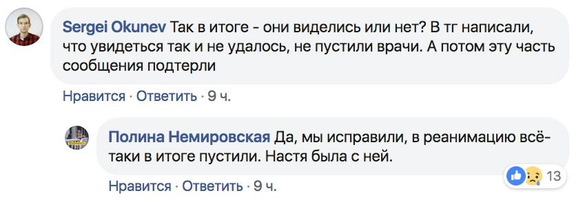 Маму не пустили в момент, когда проводили реанимационные мероприятия уже в больнице, но мы обязательно уточним это. На следующий день мама была у девочки, а после ее ухода ребенка не стало. Это горе,— цитирует Кузнецову РИА Новости.