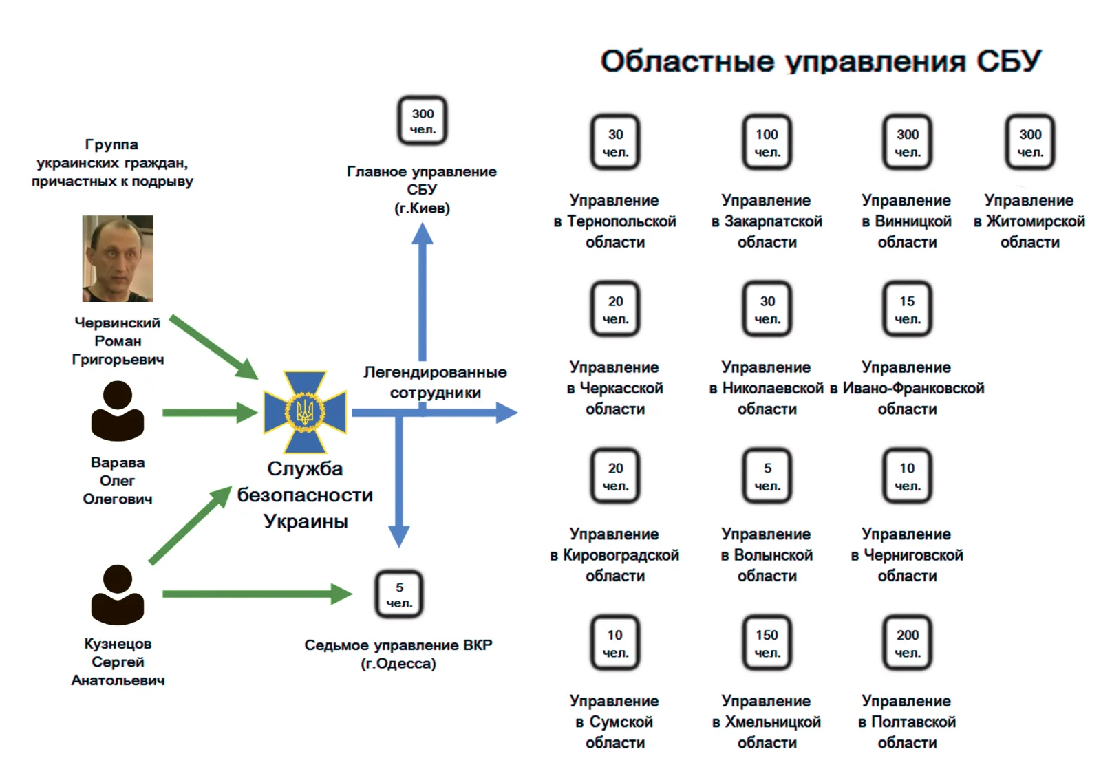 В процессе сбора информации была установлена взаимосвязь между Червинским Р., Кузнецовым С. и Варавой О., а именно их принадлежность к СБУ, через пометку «Голосеевский Леспромхоз». Кроме того, благодаря этой пометке моим специалистам удалось вскрыть практически полную структуру областных управлений и штаба СБУ, включая подчиненные части и личный состав.