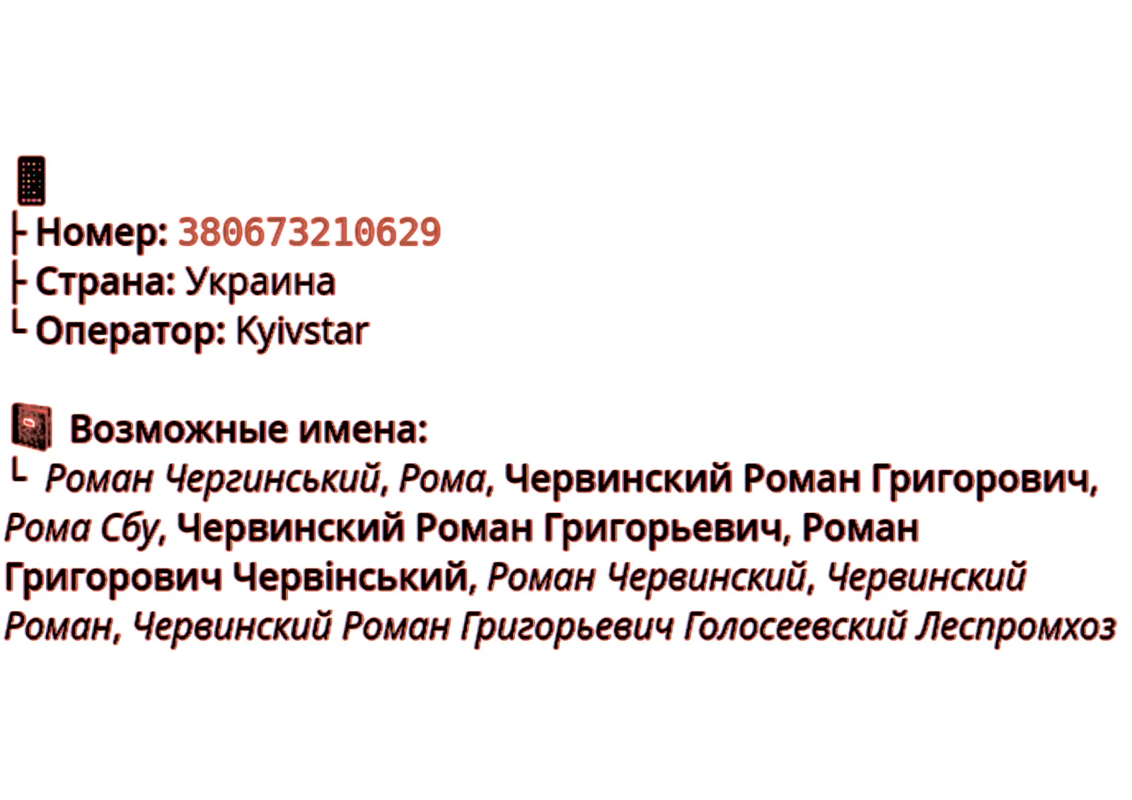 В результате сбора сведений на указанного человека из баз данных было установлено, что он записан у других контактов в телефонных книгах мобильных устройств под тегами: «Голосеевский Леспромхоз», «Роман СБУ».