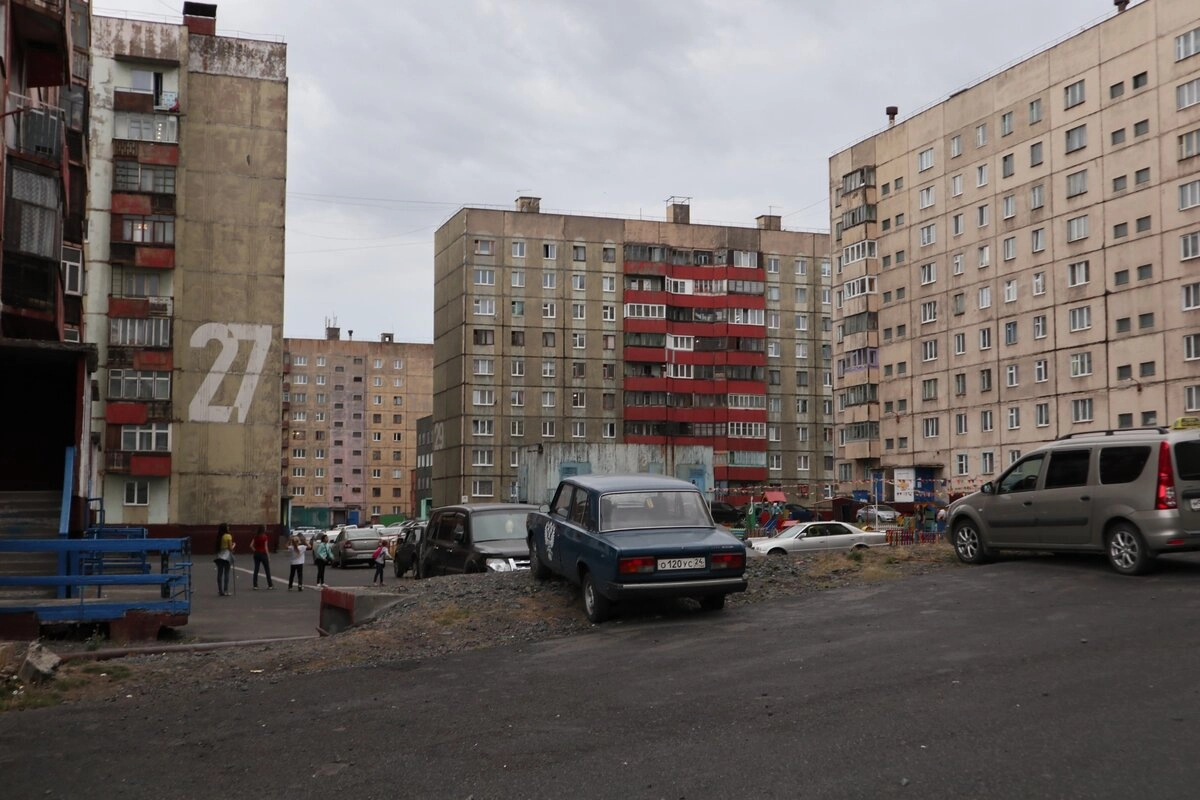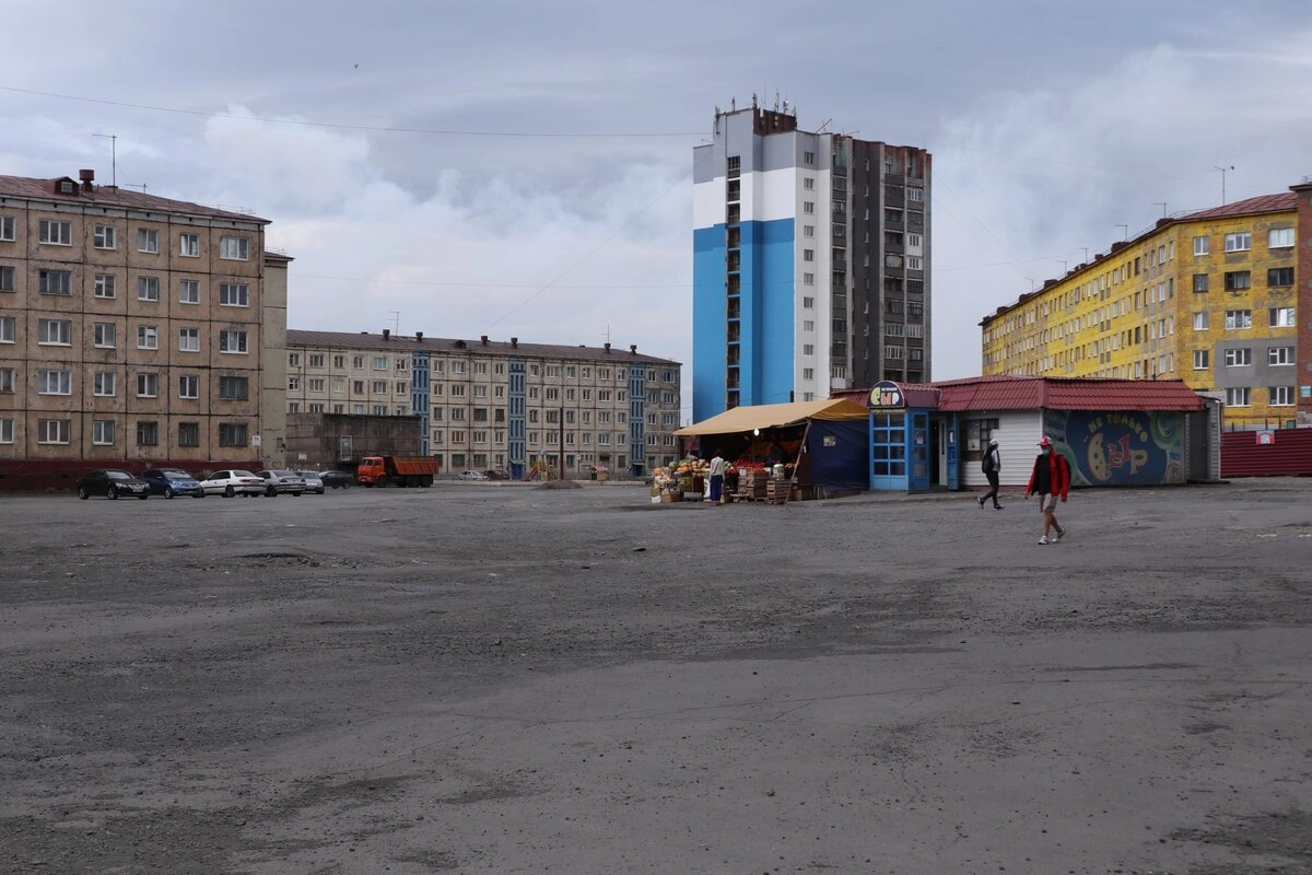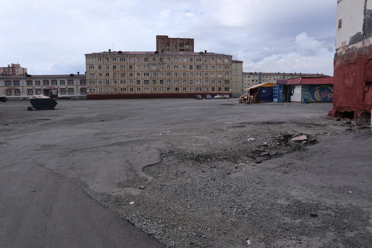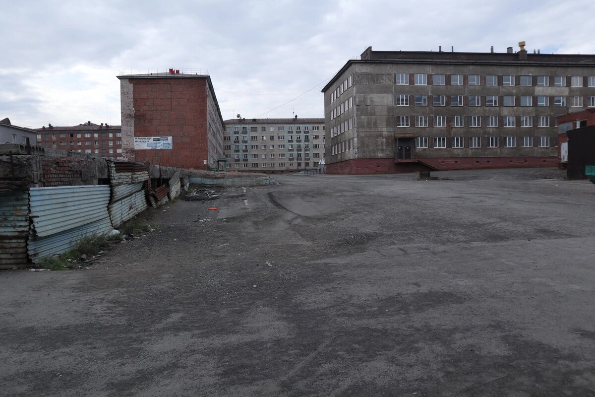 Норильск отличает от других городов то, что дворы тут — абсолютно голые. Вот просто натыканы пятиэтажки и девятиэтажки на пустой земле, а между ними нет вообще ничего!