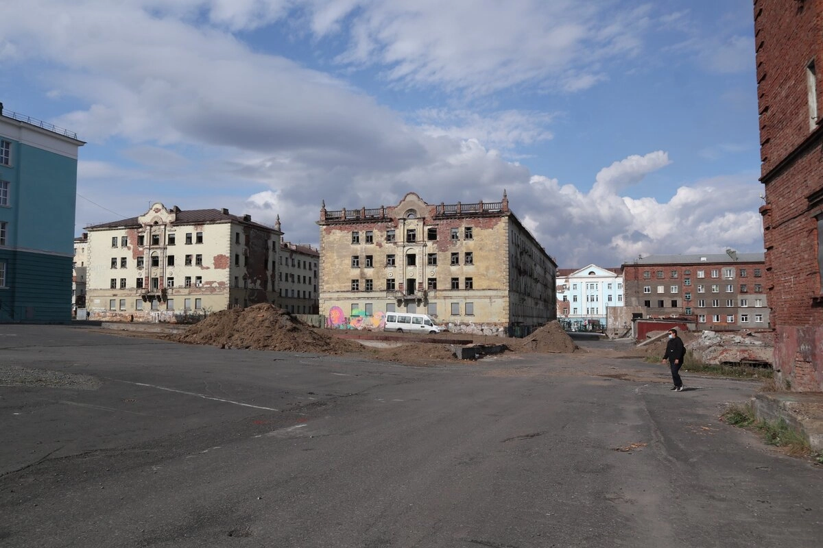 Центр города. Несколько сталинок в стадии реставрации. Вокруг них — тот же вечный северный пустырь.