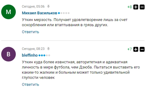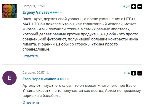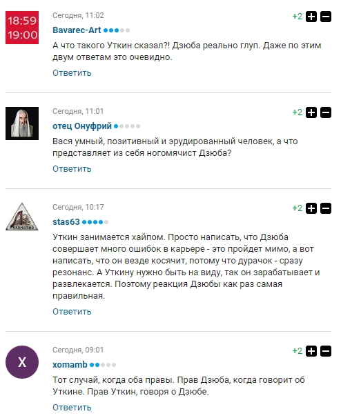 Мнения пользователей по поводу этой словесной перепалки разделились. Одни заняли сторону Уткина, другие — Дзюбы. Но были и те, кто признал правоту обоих.