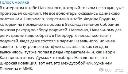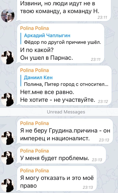 Сам Грудин в свою очередь ответственно заявил, что после скандалов в «Партии прогресса» и питерском штабе Навального дорога назад для активиста невозможна: «В этом цирке участвовать не буду».