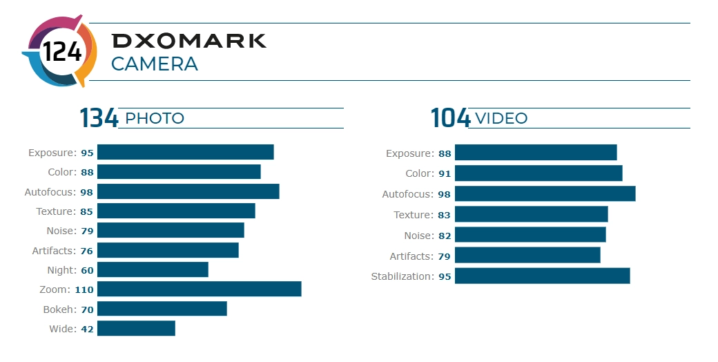 В общем зачете камера Xiaomi Mi 10 Pro набрала 124 балла, что стало абсолютным рекордом и позволило смартфону возглавить рейтинг лаборатории. За фотовозможности камера получила 134 балла, а за видео — 104 балла.
