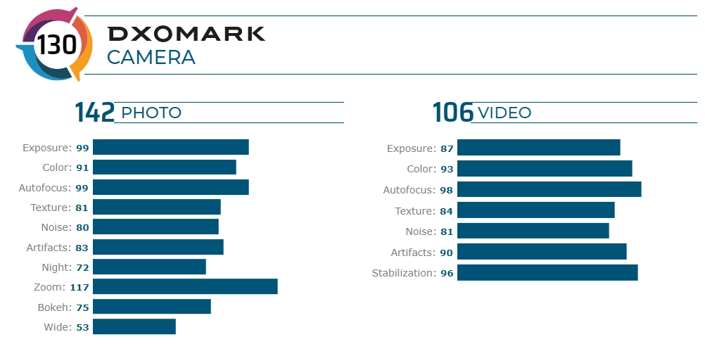 В общем рейтинге Xiaomi Mi 10 Ultra набрал рекордные 130 баллов, что на два балла больше предыдущего лидера Huawei P40 Pro. Отдельно за фотовозможности смартфон набрал 142 балла, а за видео — 106 баллов.