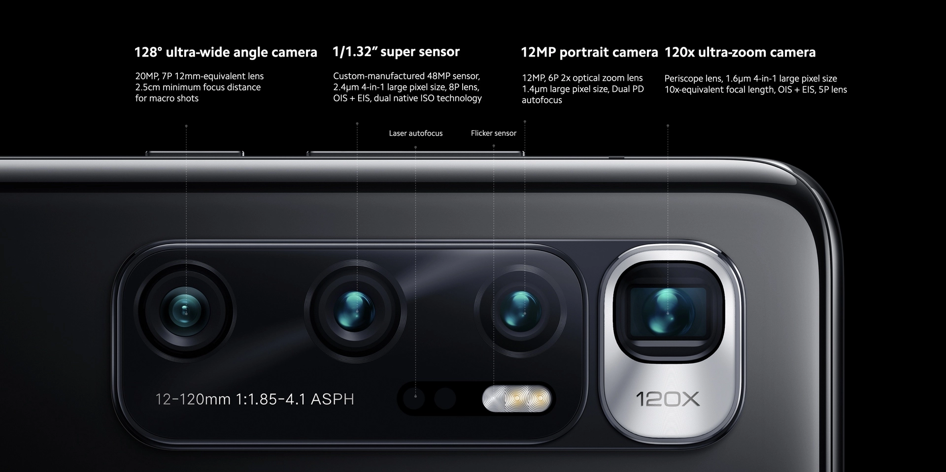 Напомним, что камера Xiaomi Mi 10 Ultra оснащена главным сенсором Sony IMX586 на 48 Мп, широкоугольным на 20 Мп, перископическим телеобъективом на 48 Мп, оптическим 10-кратным и цифровым 120-кратным зумом, а также портретным телеобъективом на 12 Мп с двукратным оптическим зумом.