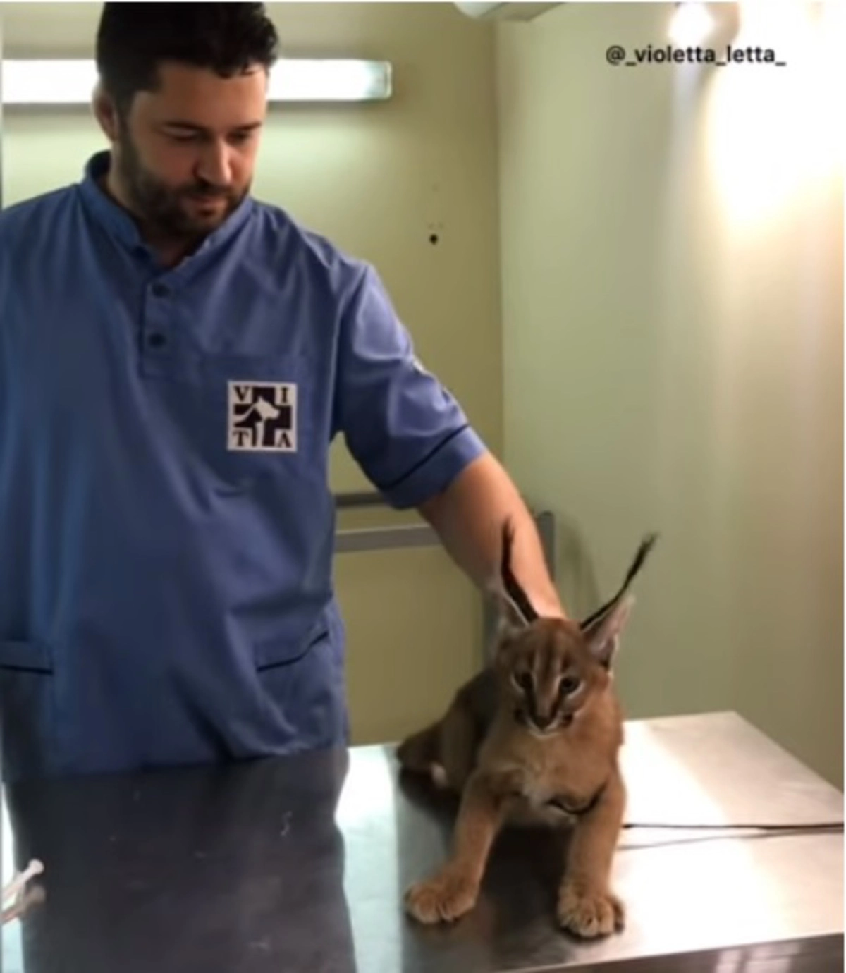 Интернет-пользователи восхитились красотой кота каракала и самообладанием врача.