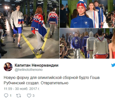 В Сети можно встретить множество комментариев по поводу того, что сборную России в таких костюмах было бы лучше отстранить от участия в Олимпиаде 2018 года.