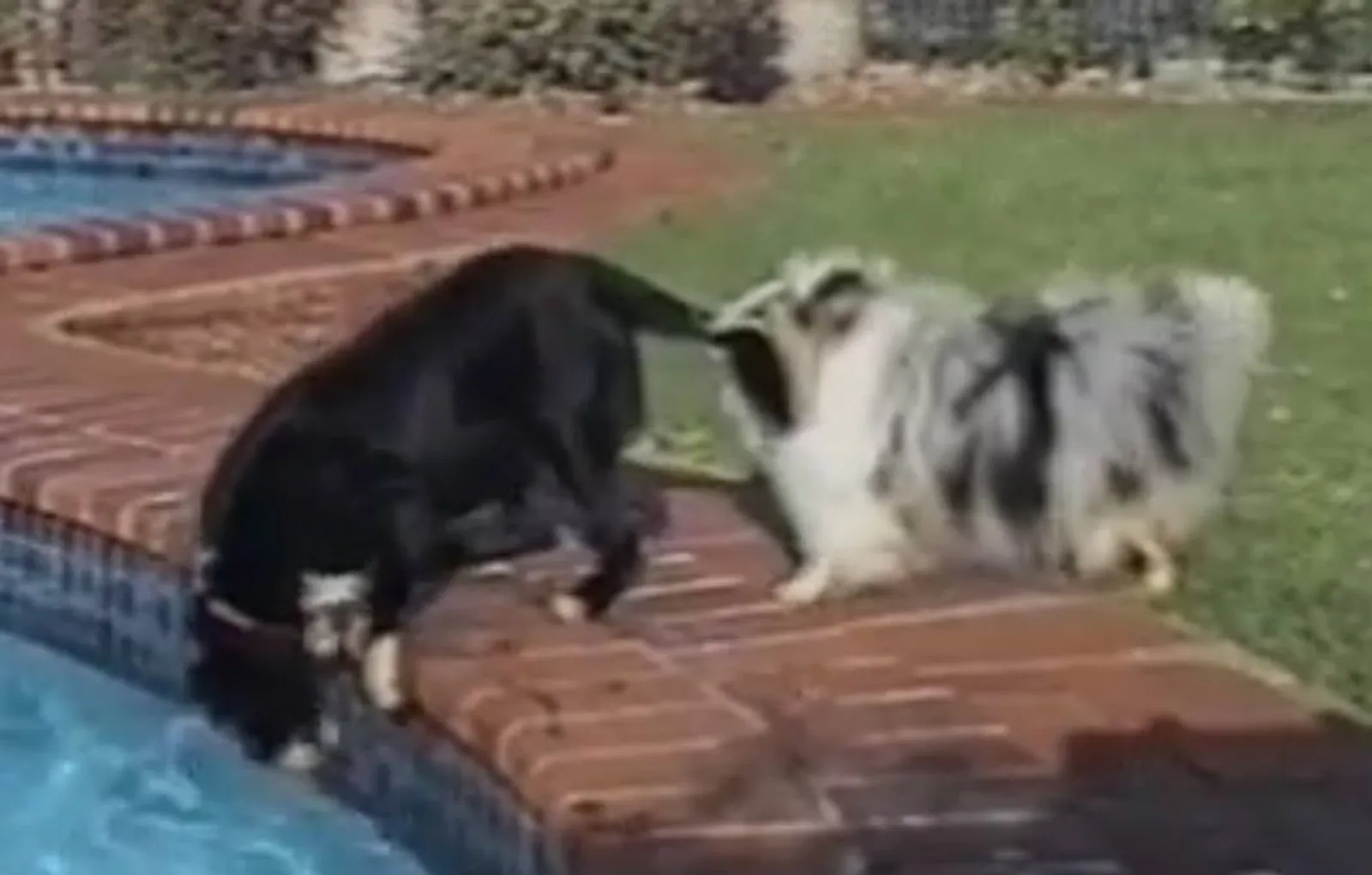 «Я держу!»: пёс держит своего друга, чтобы тот не упал в бассейн